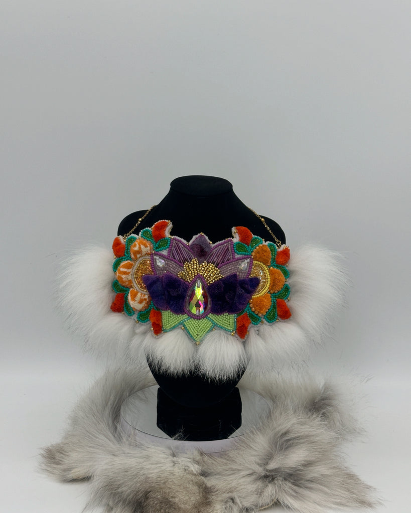 My name is Natasha Peter and my dena name is DenaSqwella. I am Kaska First Nation, a member of the Wolf Clan, and I was raised on Kaska Lands. My elders taught me how to sew. When I was in a dark place in life, I turned to sewing and to my Dena skills that I’ve learned as a child. Creating Kaska Dena Designs saved me. I’m proud to share my culture with you and carry on the legacy of my ancestors through my art.